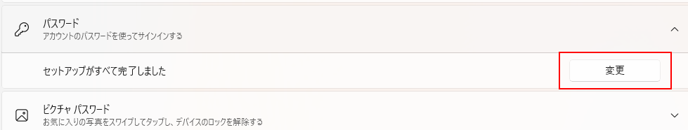 「パスワード」の下に変更ボタンが出るので「変更」を押します。